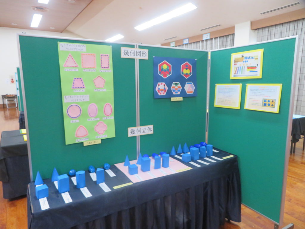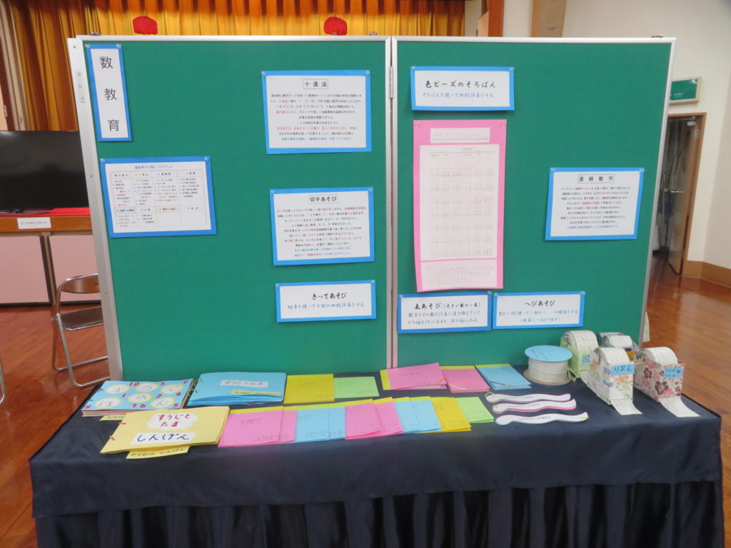 ハートのバッグや糸かけを製作。また、モンテッソーリ教具の切手遊びやそろばんにも実際に触れ、教具の素晴らしさに出会った方もいらっしゃいました。