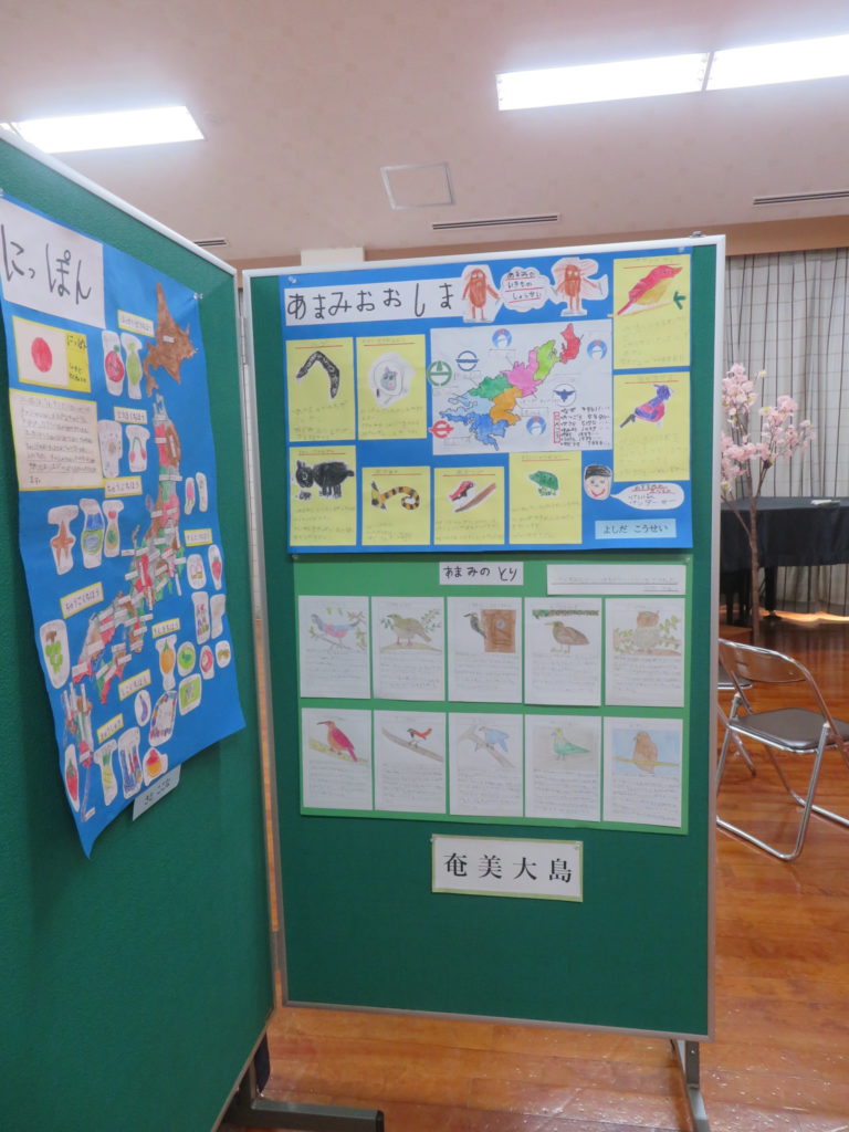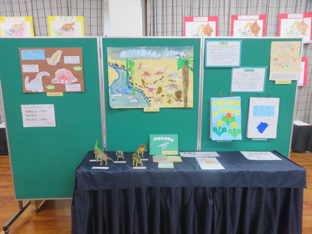 子ども達の「やってみたい!」の気持ちから始まり、刺繍に編み物、折り紙に糸かけ、幾何立体にカレンダー、世界地図に国旗、恐竜に奄美の生き物、加減乗除の計算など様々な分野の作品が出来上がりました。