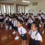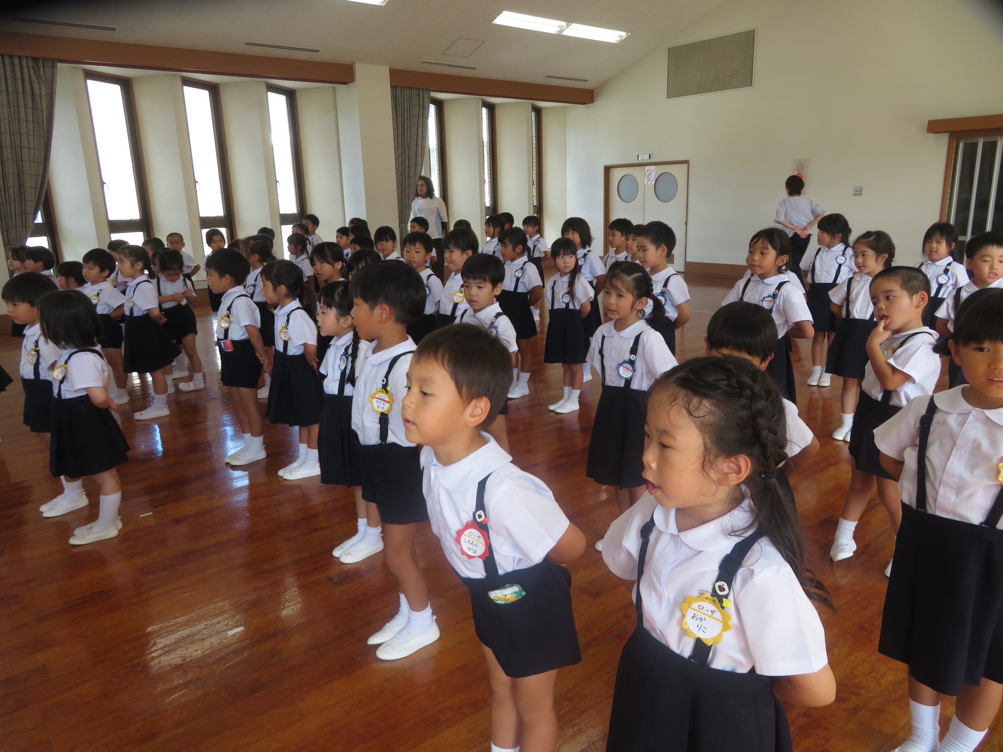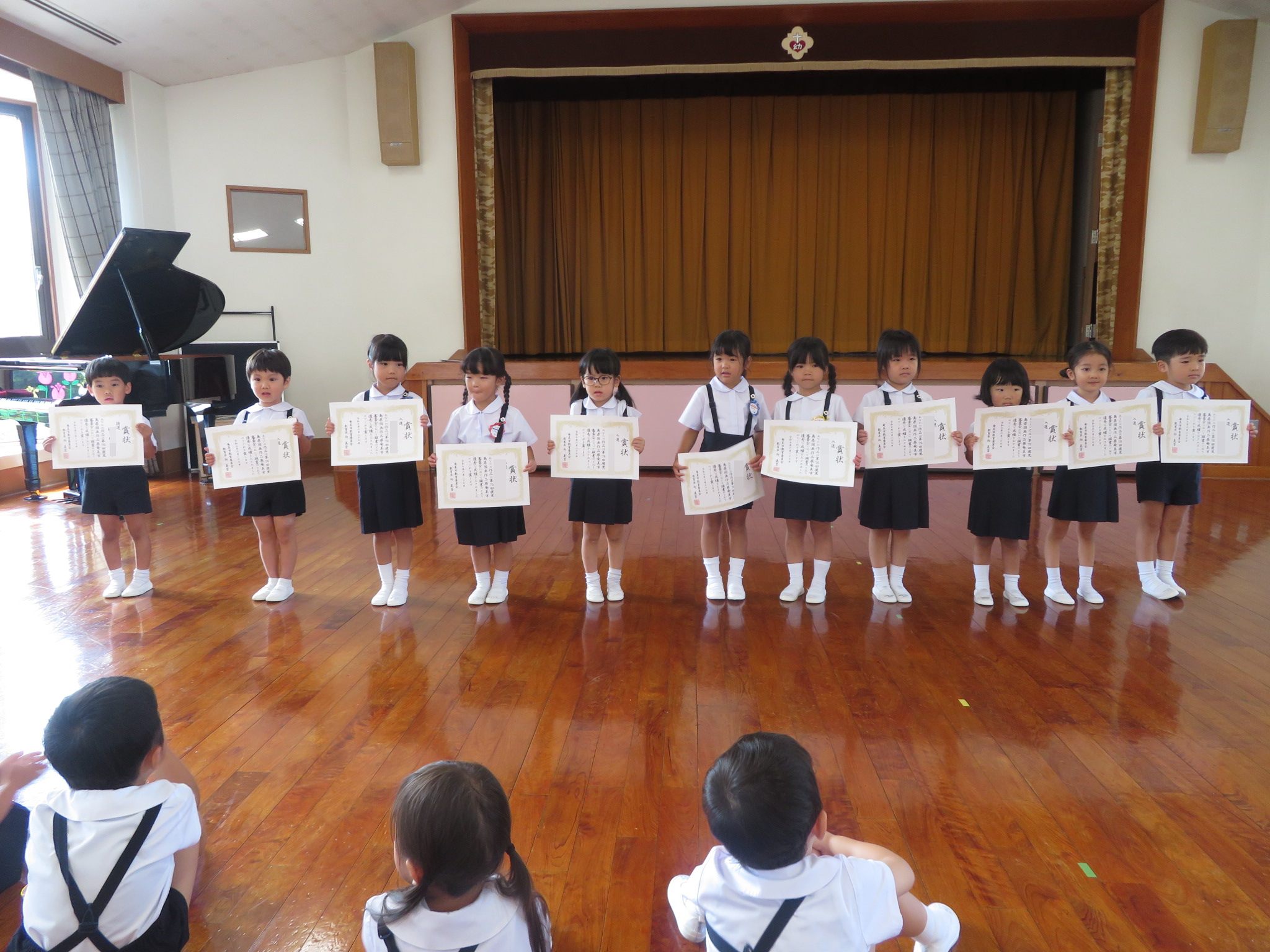 新しいお友達の紹介や1学期に行なわれた『鹿児島県図画作品展』にて、特選・入選に選ばれた子ども達の表彰式も行いました。