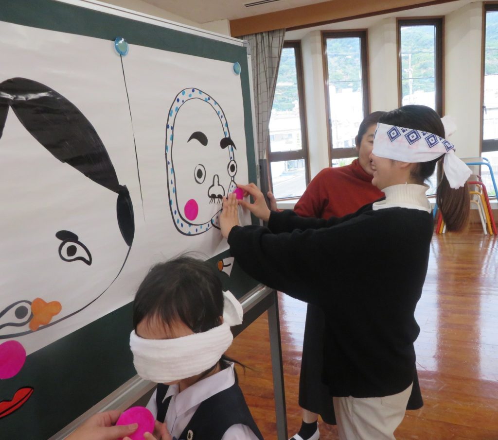 お正月にちなんで、十二支の歌や福笑い対決で盛り上がりました。