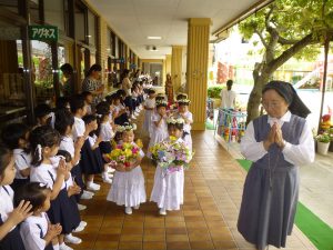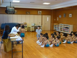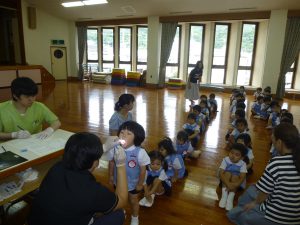 名瀬信愛幼稚園後援会(会長:東耕世)主催のわくわく交流会(父の日をかねて)が奄美市の総合体育館で10時~開催されました。 全体役員の運営により たけのこ体操、ボ-ルリレ-、輪くぐり、親子競技、綱引きなどをして家族みんなで楽しい時間を過ごしました。