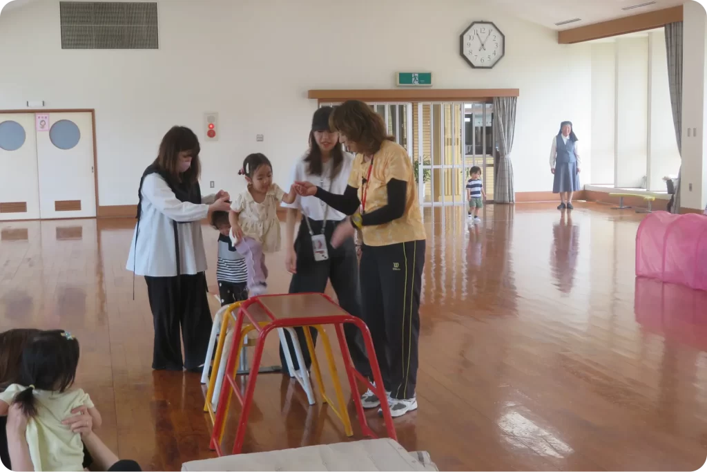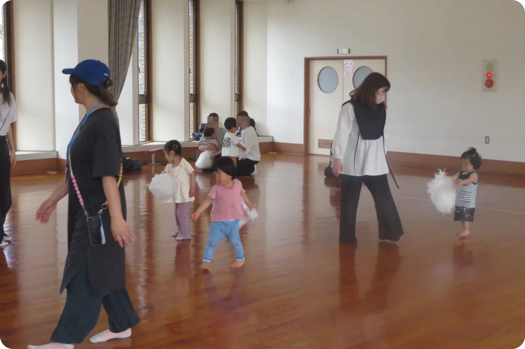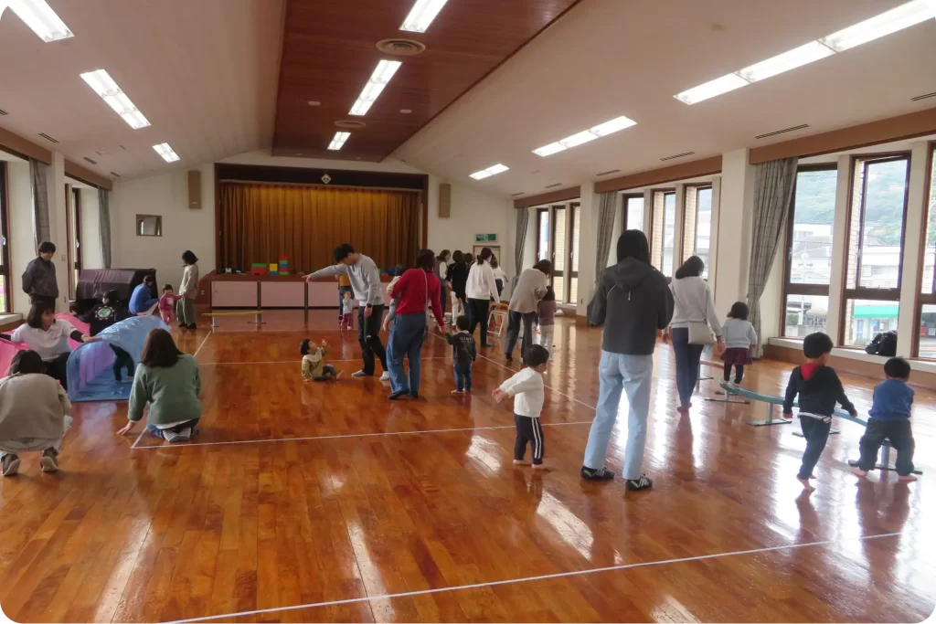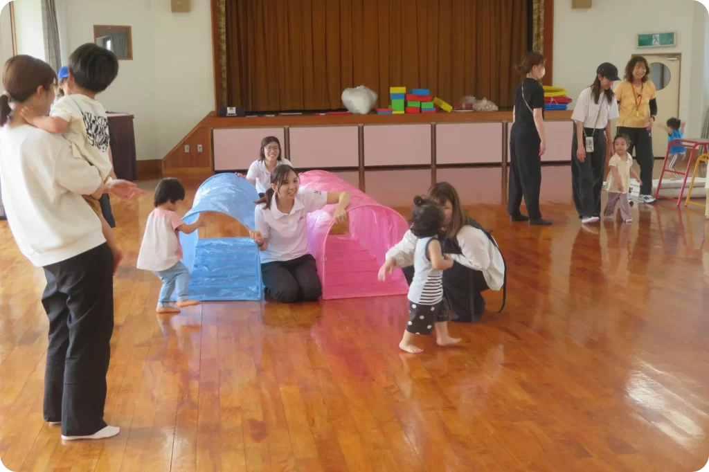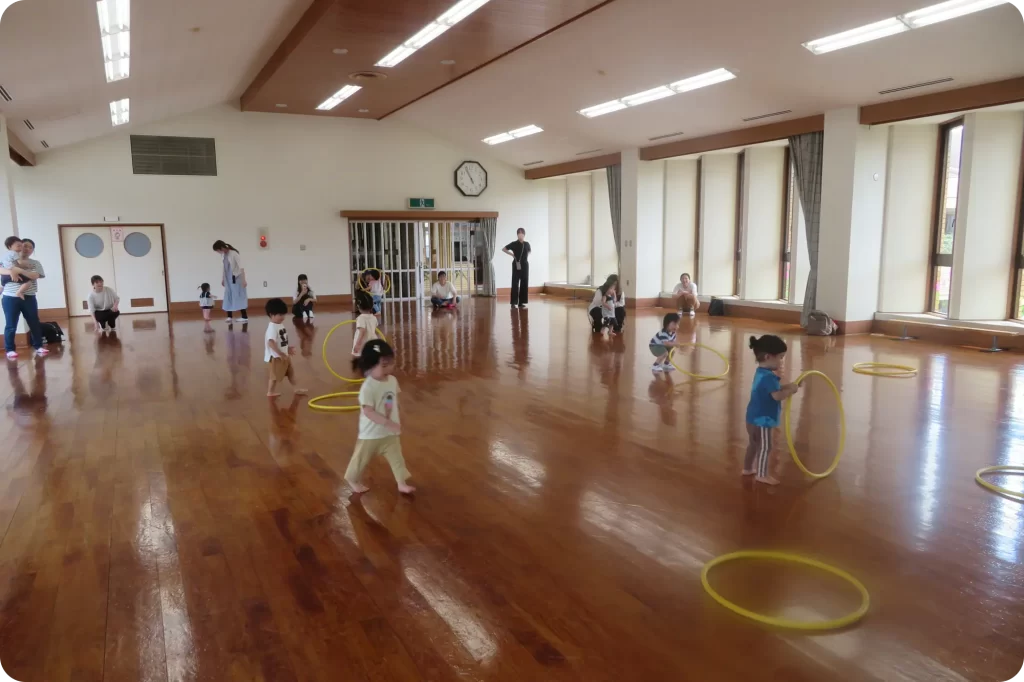 - 親子で楽しく、いろいろな活動を通して身体の発達と心の成長を助けます。